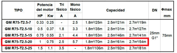 BOMBA SUMERGIBLE GM R75-T3-20 1 HP